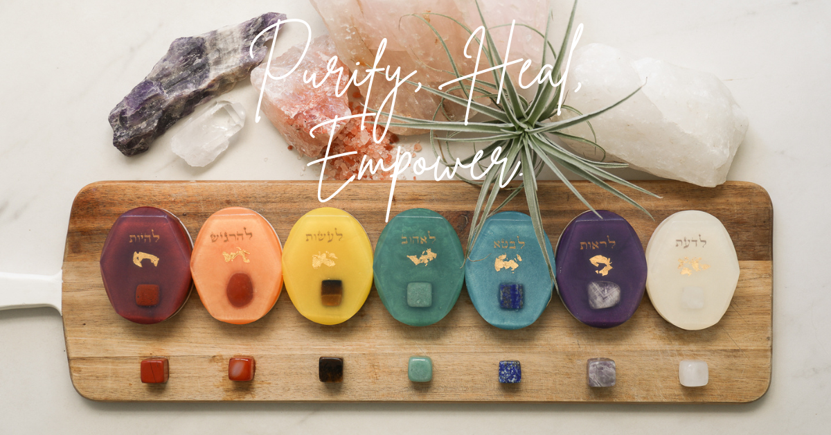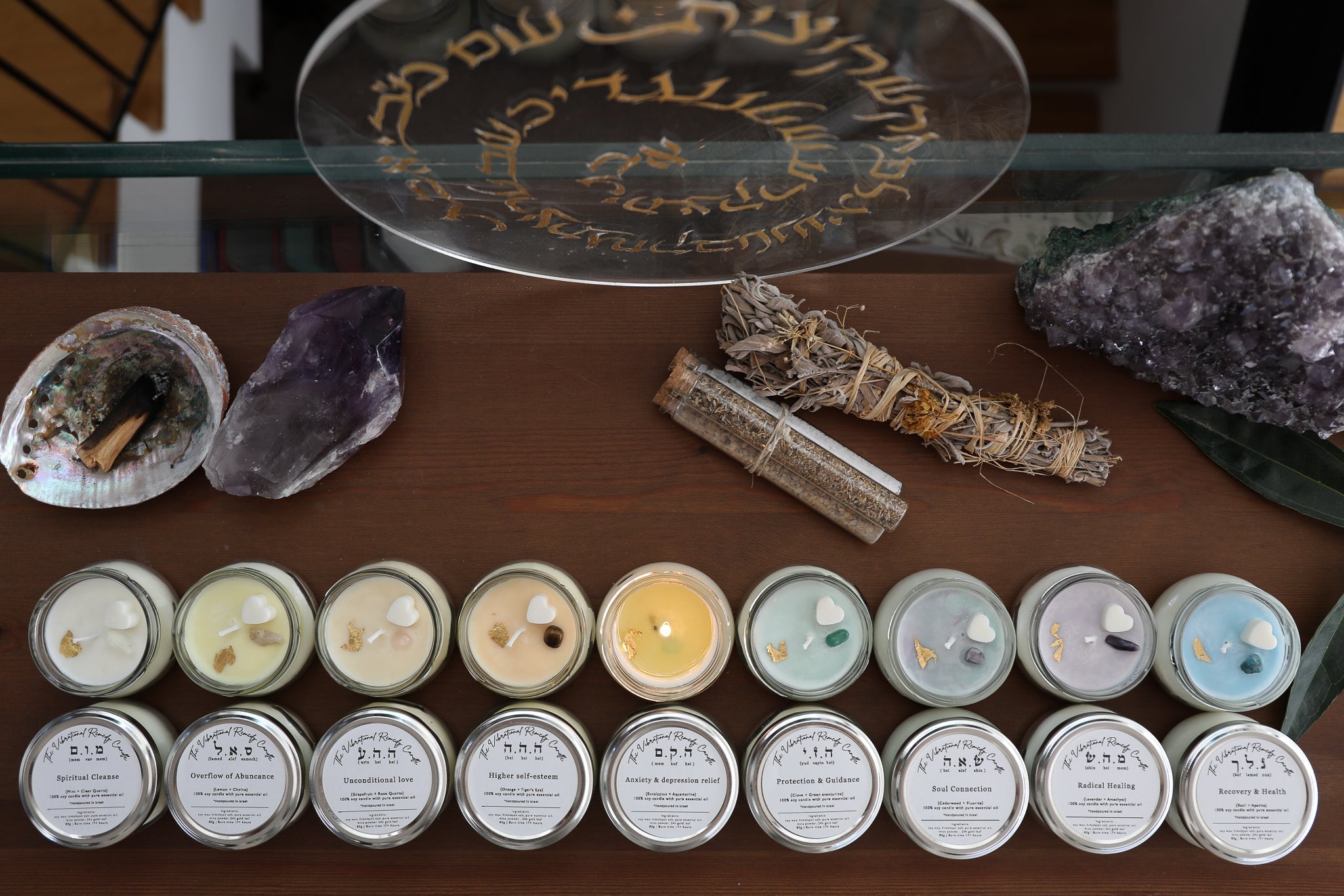 סבונים 100% טבעיים ונרות משעוות סויה טהורה, בשילובים עוצמתיים של זהב 24 קראט, שמנים אתריים, אותיות מהשפה העברית וקריסטלים — לחוויה המשלבת טהרה, ריפוי ואנרגיה גבוהה